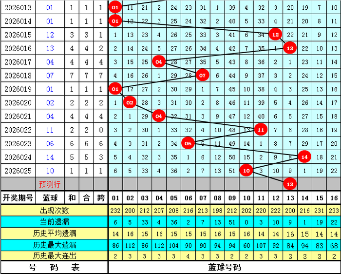 蓝球分析:最近7期蓝球号码012路比为1:3:3,奇偶比为2:5,大小比为3:4,本期看好蓝球开衰退数号码,温雅蓝球13。