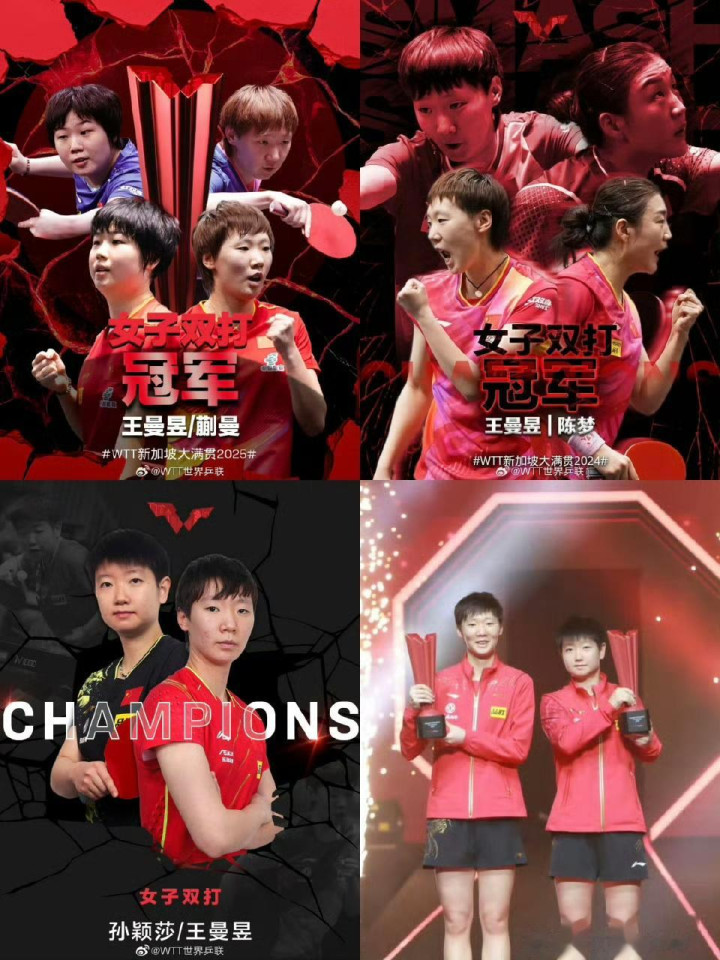 自2022年起于今,五届WTT新加坡大满贯比赛女双冠军取得组合: