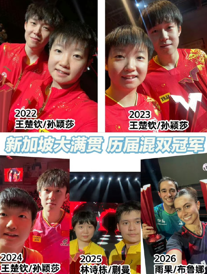 自2022年起于今,UEDBETapp下载五届WTT新加坡大满贯比赛混双冠军取得组合: