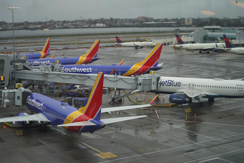 这是3月23日拍摄的好意思国纽约拉瓜迪亚机场。新华社记者张凤国摄