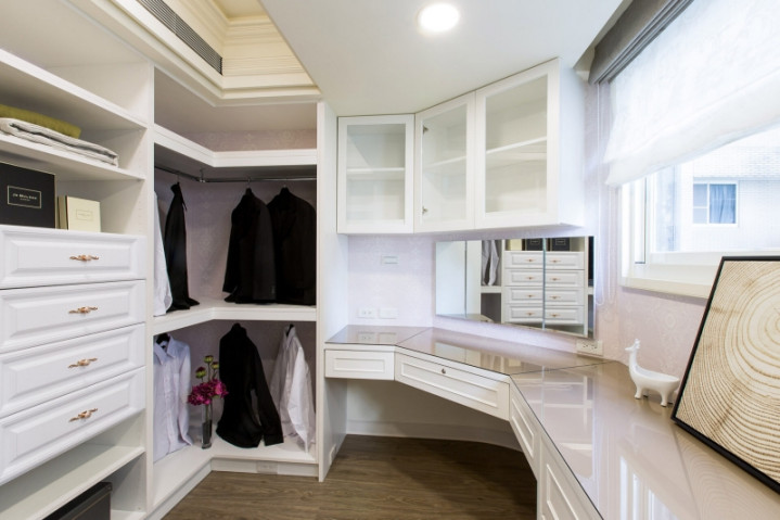 更衣转角:白色转角柜网络梳妆台机能,普及正常使用与收纳戒指。