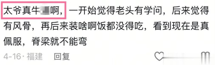 来自热播剧《八沉路云和月》里的“老太爷”张汝贤。
