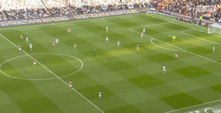 天外体育赛后对这粒进球的分析,聚焦于马丁内利向前逼抢格伊的采取——那时格伊回撤至曼城禁区左侧,为门将提供出球采取。多纳鲁马发现空当,通过手抛球传给奥赖利,打穿了阿森纳的逼抢体系。