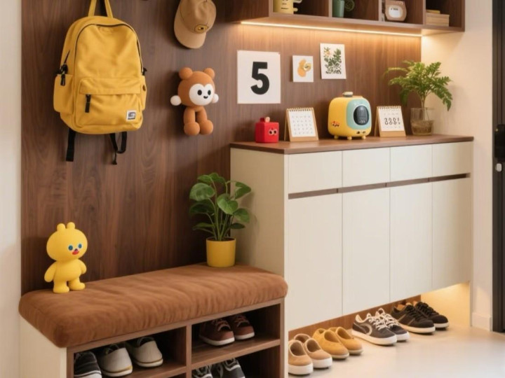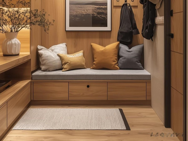 关于玄关,冷漠全球按照如下的步调装修。玄关要建设换鞋凳,有常用鞋的存放区,还有临时的置物台。