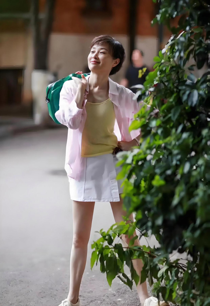 她留着一头利落的短发,发尾微微翘起,莫得刻意收拾的僵硬感,反而多了几分春日的俏皮,衬得整张脸格外泄漏。脸上莫得浓装艳抹,只化了一层浅浅的底妆,衬得气色通透,笑起来的时分,眼角的细纹当然舒展,那是岁月留住的良善思路,不刻意守秘,反而比满脸玻尿酸的假抽象动东说念主百倍